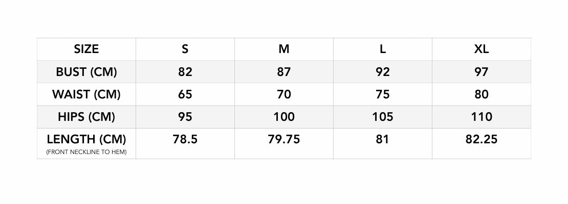 Each design is tailored with its own measurements to complement the individual silhouette. Please refer to the specific measurement details for each piece accordingly.