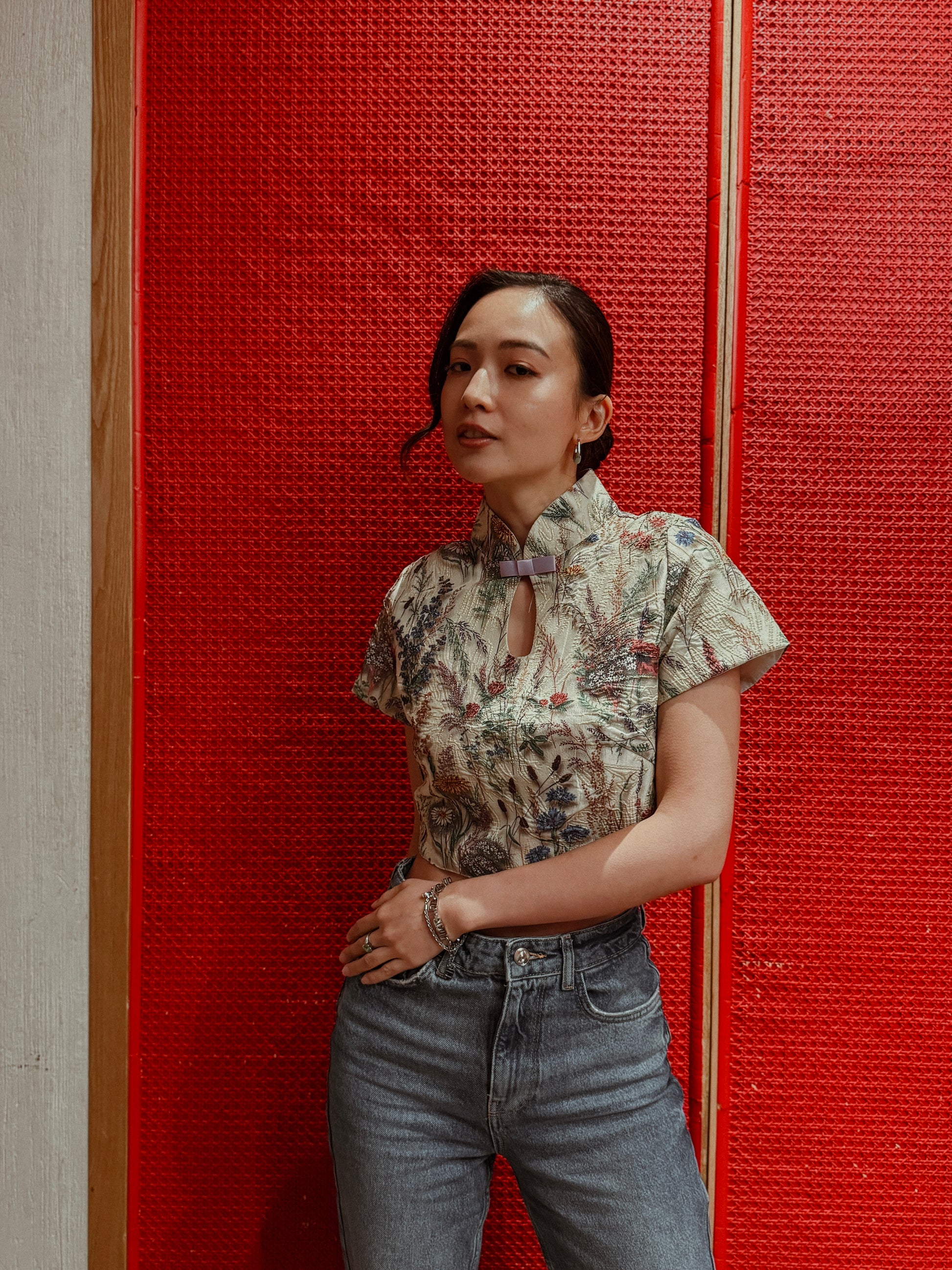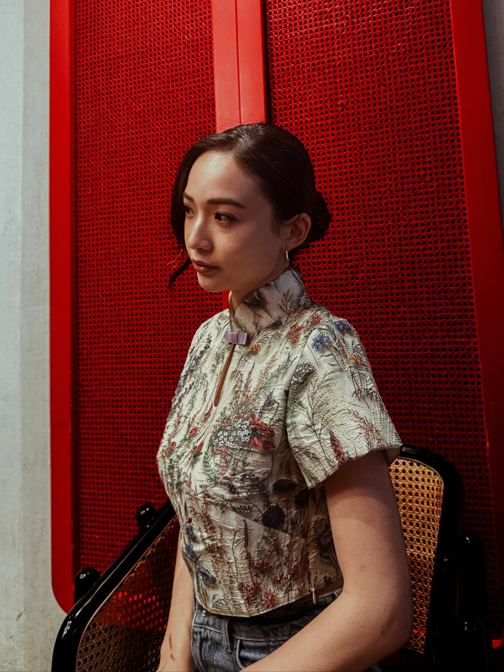 This crop top carries the essence of our iconic silhouette, now refreshed with a dainty sleeves for the girls who prefers mix & match separates. A versatile staple.