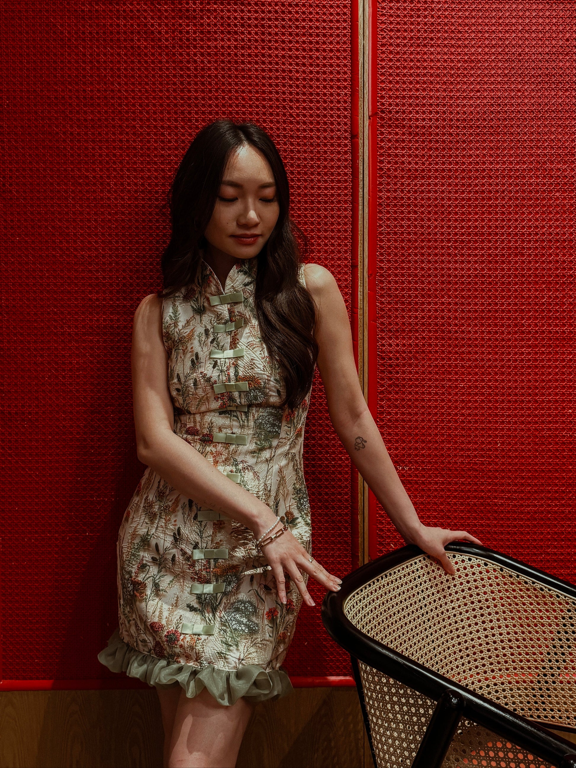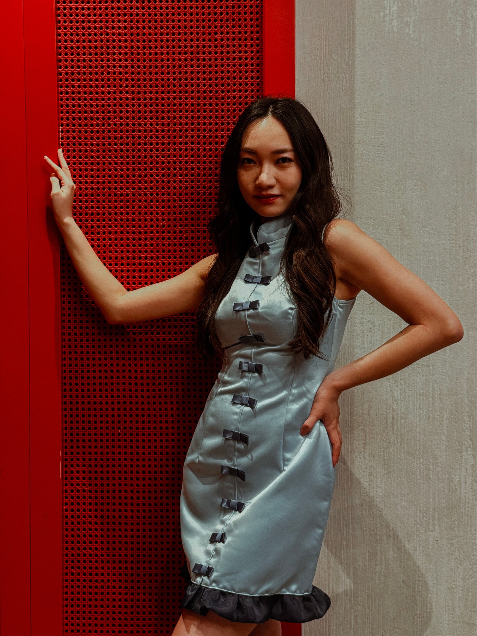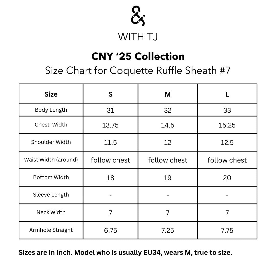 Our sellout sheath dress from our previous lunar collection returns, now enhanced with a coquettish touch with a flirty update with ruffles at the hem. Still chic, but cuter.
